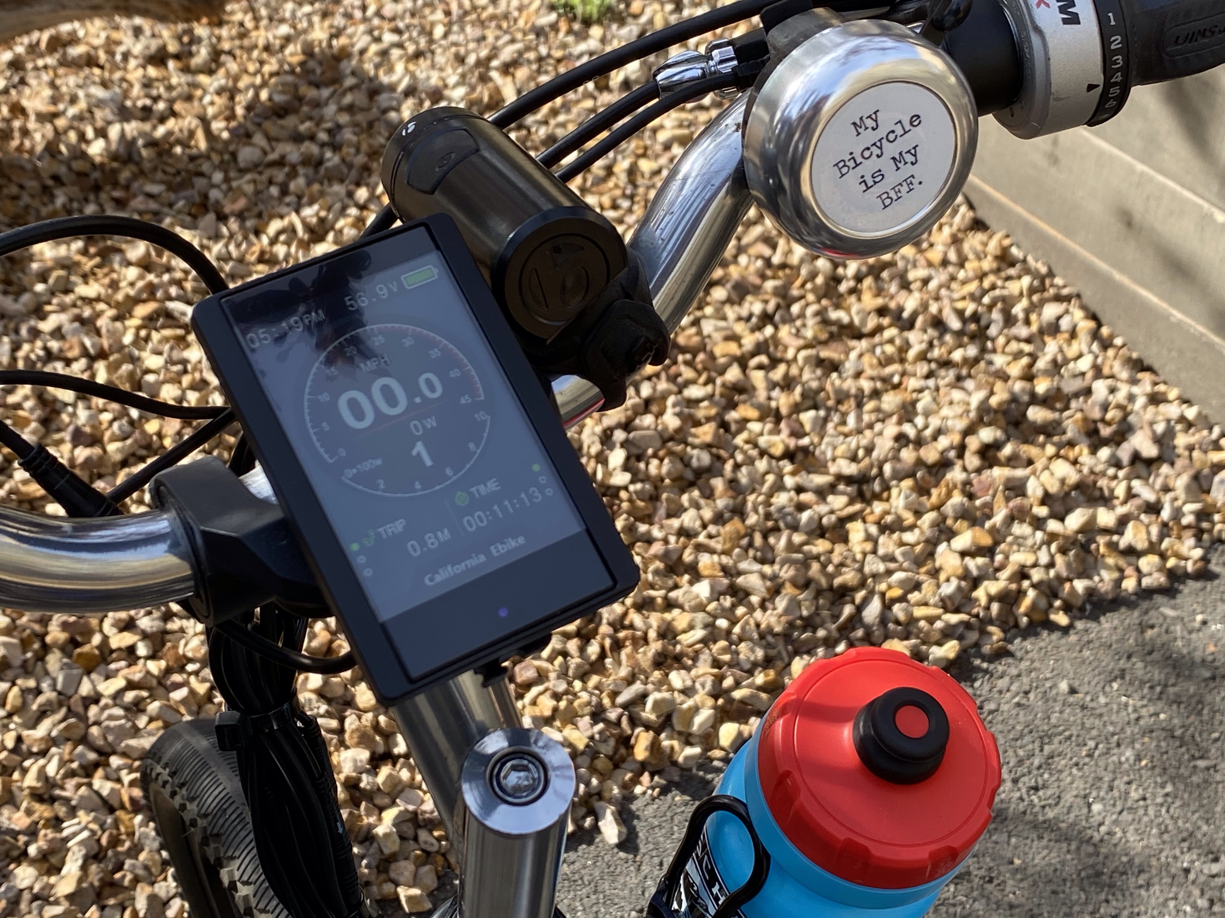 Working with an older bike can be challenging. Notice the “side saddle” installation of the bottle holder next to the display.