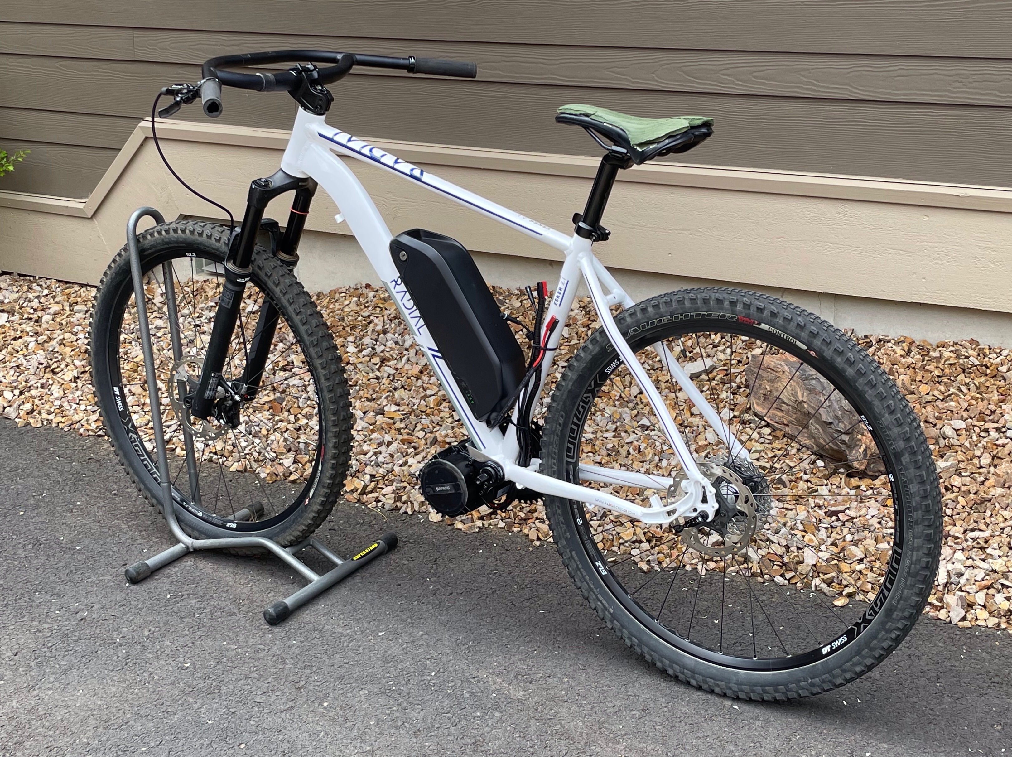 Outfitted with a BBSHD motor and 52 V battery, the peak power of this ride is easily 1500 watts. It sold so fast, we don’t have photos of the final build showing our Maxxis Hookworm tires!